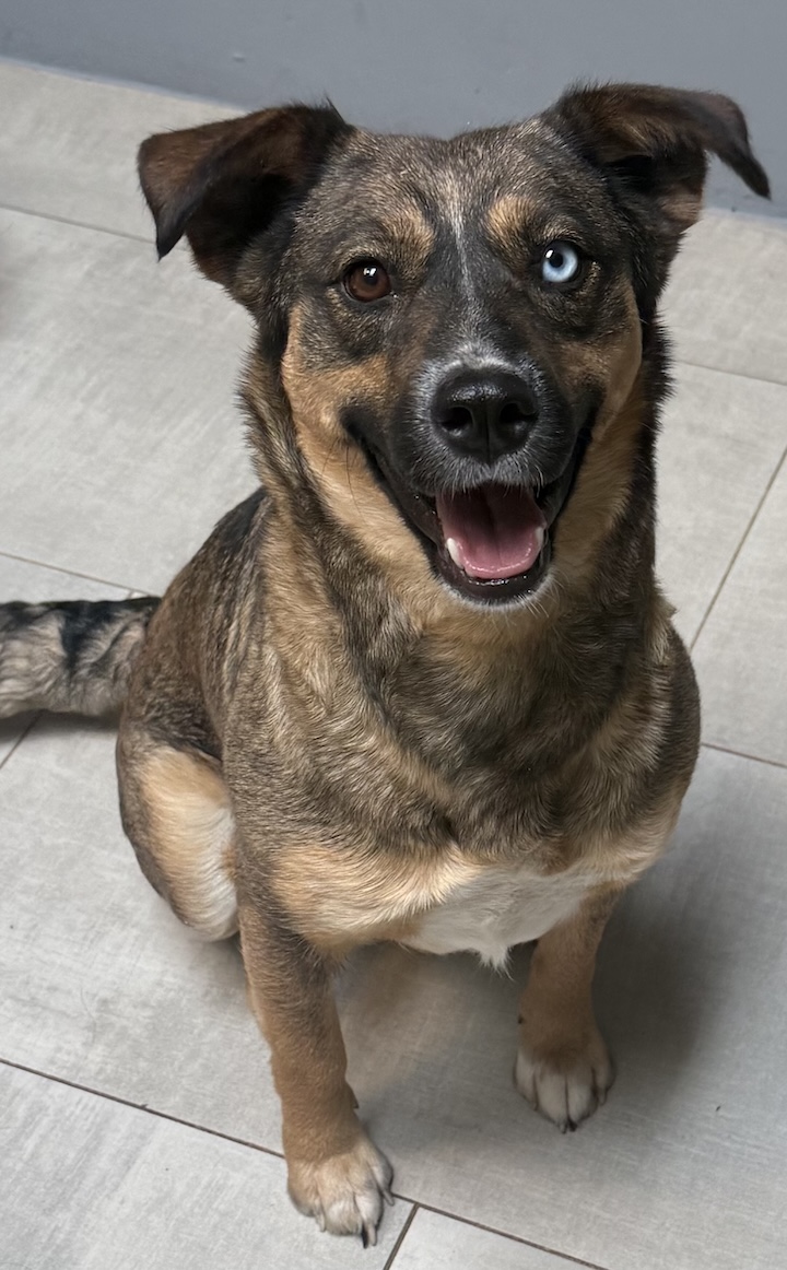 Hi, I’m Auri! I’m a pint-sized pup clocking in at a mighty 37 lbs and around 2–3 years old. I’ve got a soft, pretty coat and show-stopping eyes. I come complete with full-body wiggles every time I see you… even if you just leave the room for a second!