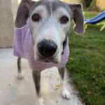 At 14 years young, Miss B is full of love, spirit, and a touch of sass! This beautiful Weimaraner–Pit mix may be a senior, but she still enjoys her little walks, stroller rides, and even the occasional “zoomie” when she’s feeling playful.