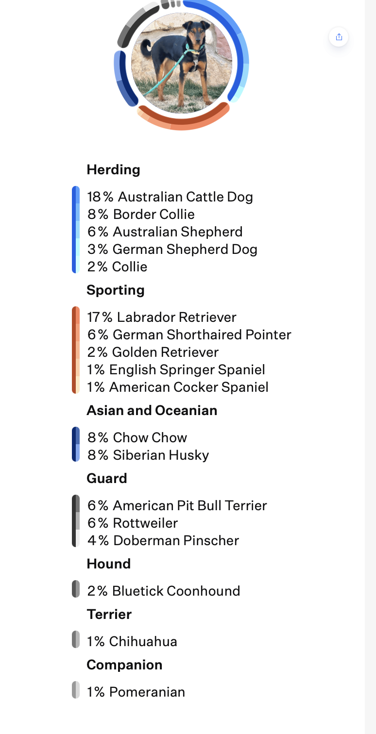 She’s a long, lean 43 pounds —  a blend of cattle dog and Labrador retriever, with a charming curly tail from a touch of husky.